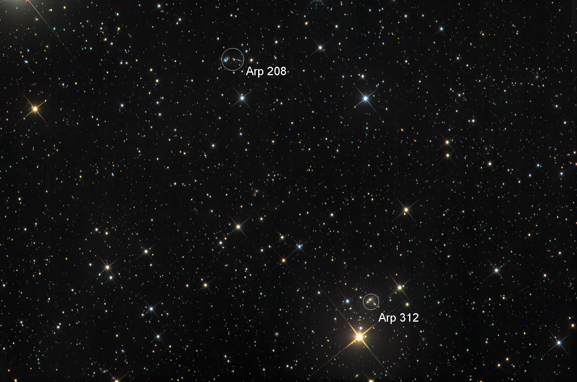 Annotated| 0bject | Arp 208 & 312 Galaxies in Hercules |