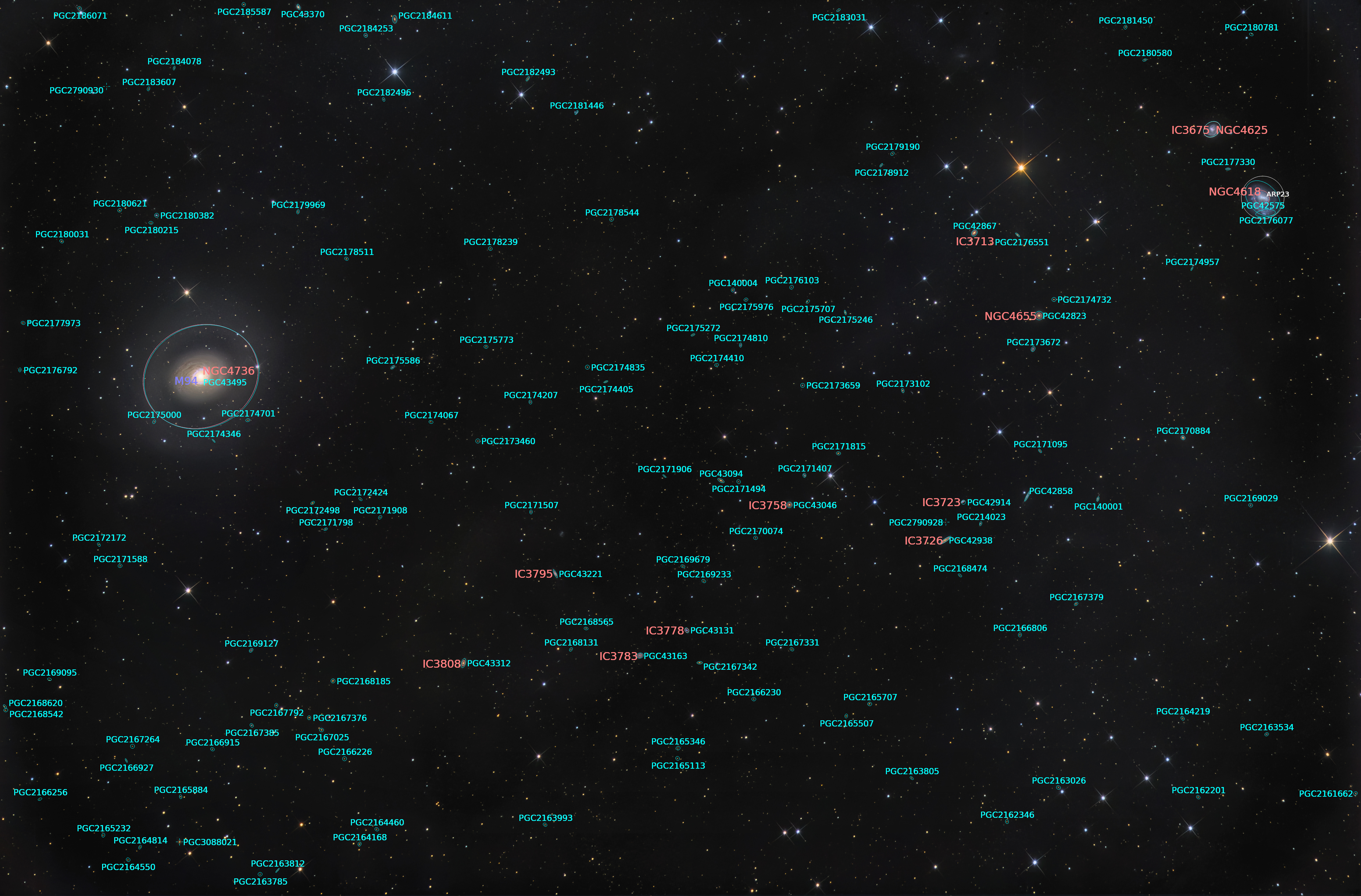 Annotated| 0bject | M 94 & Arp 23 Galaxies in Canes Venatici |