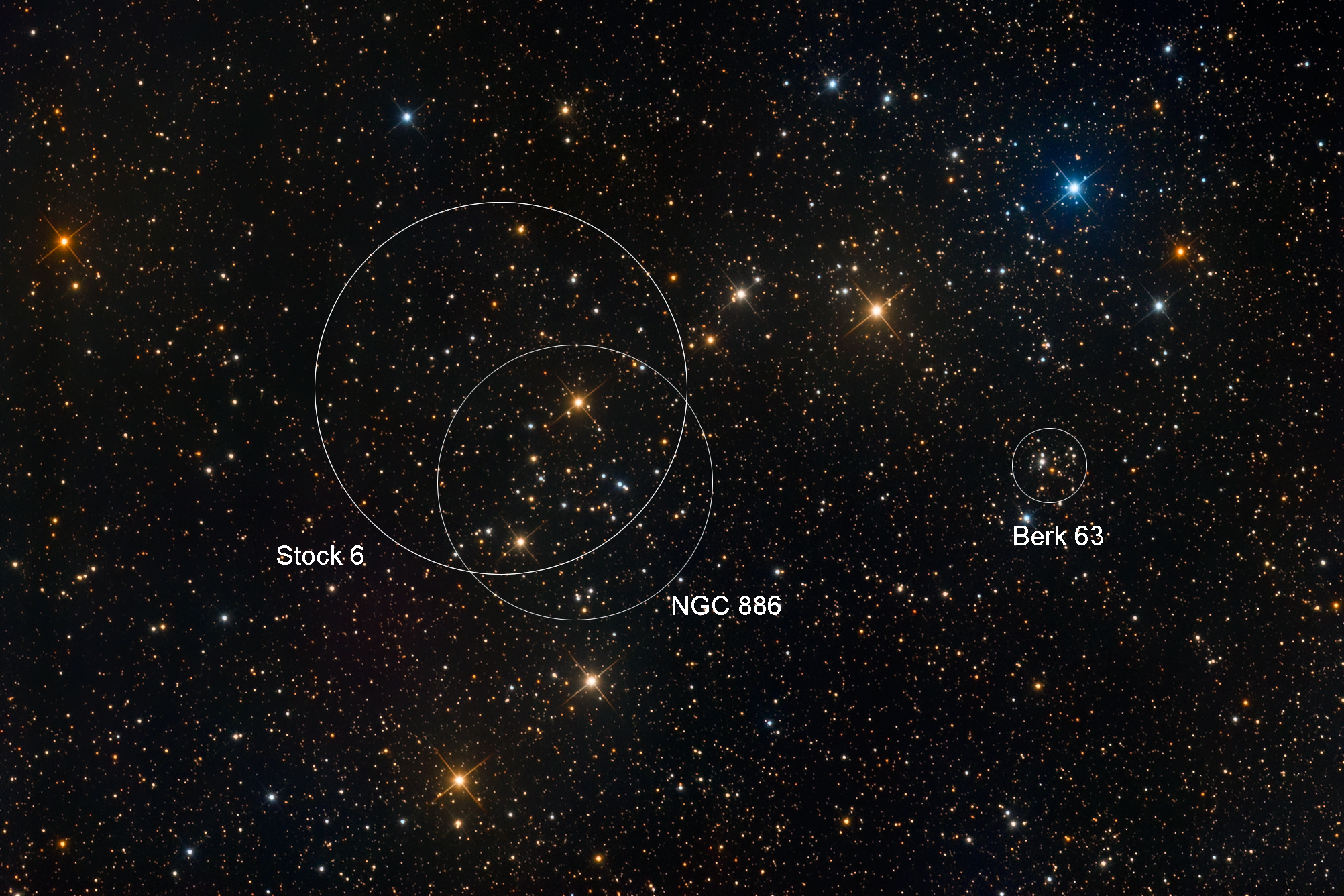 Annotated | 0bject | NGC 886 & Stock 6 Open clusters in Cassiopeia (also Berkley 63) |