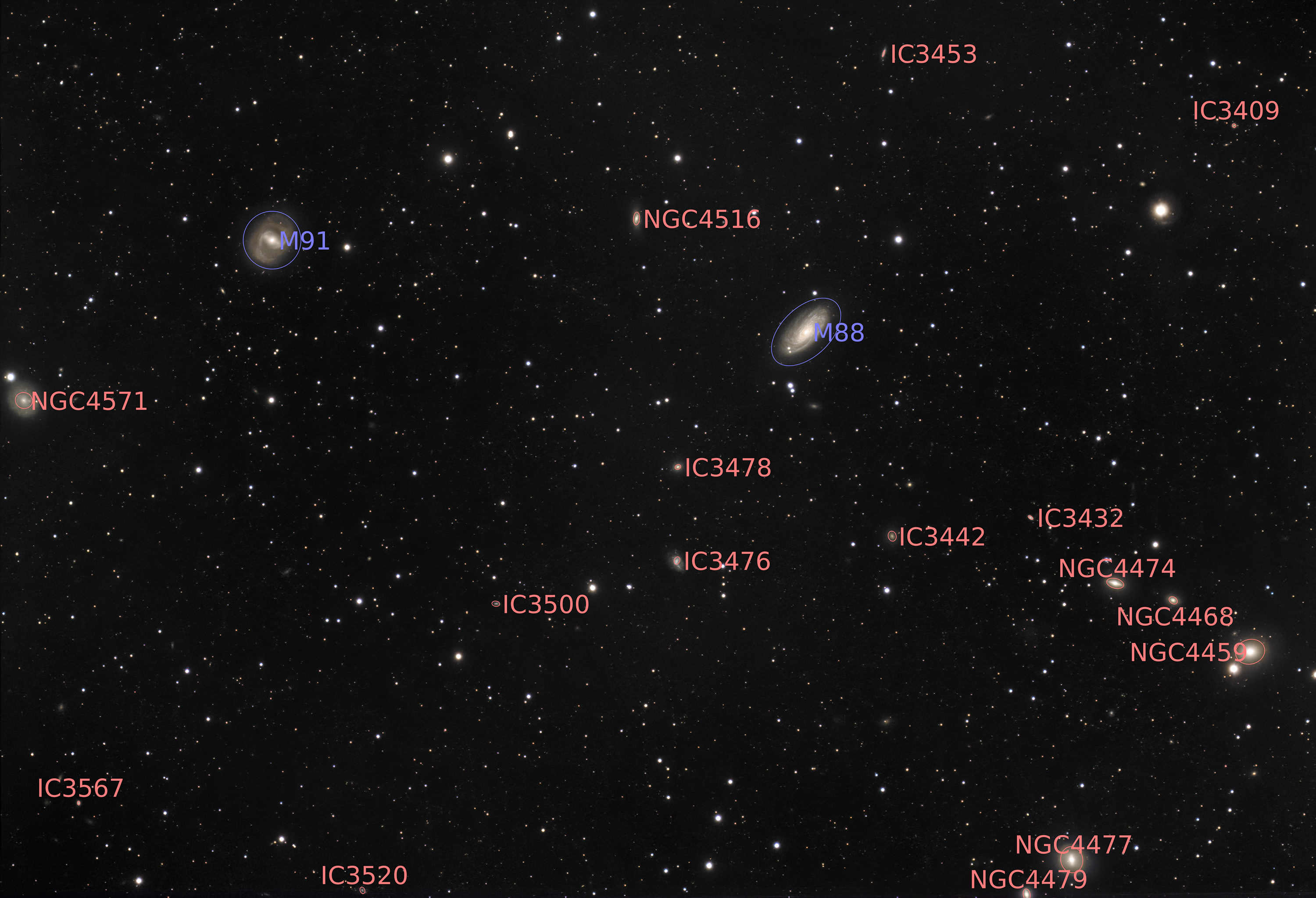Annotated | 0bject | M88 & M91 Galaxies in Coma Berenices |